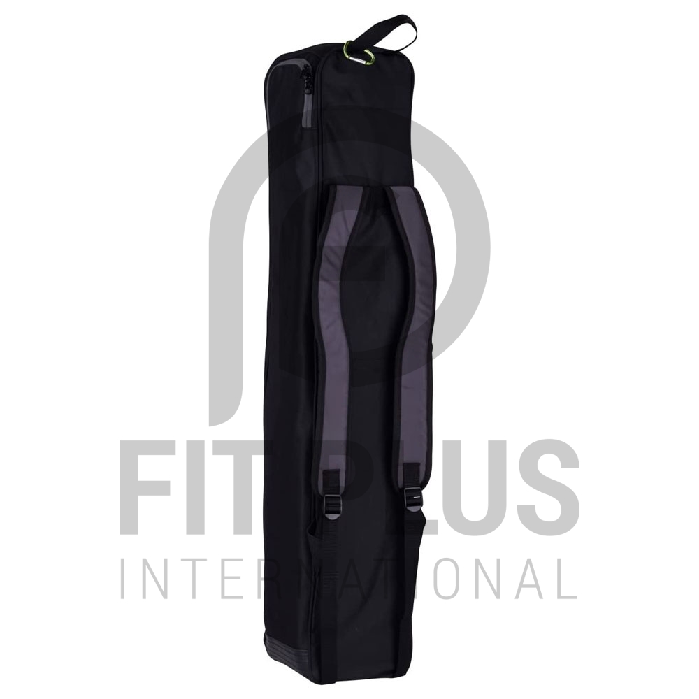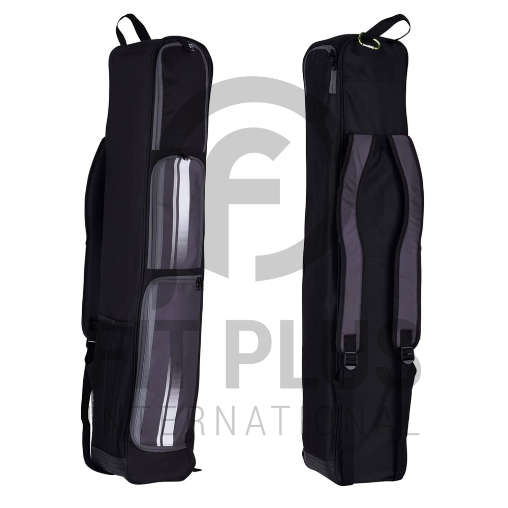 Up to 4 sticks. Stick compartment with three large sections for kit and shoes. Adjustable padded double shoulder strap.