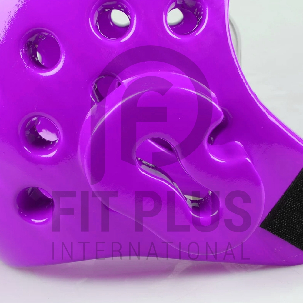 Taekwondo headgear is typically made from vinyl or dipped foam and is fastened by a chin strap. It may contain vents designed for better ventilation and hearing. Face cages may also be attached to Taekwondo headgear to offer additional protection to the face.