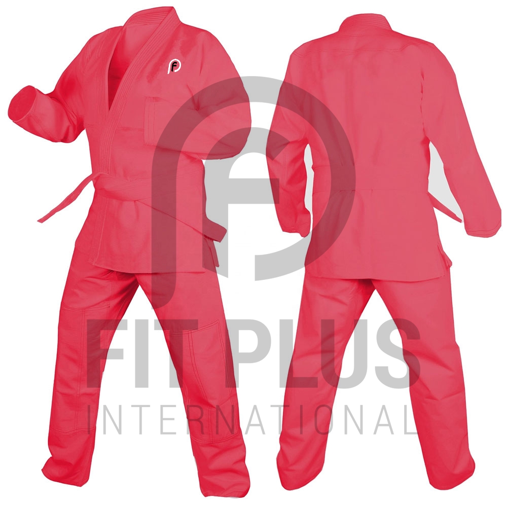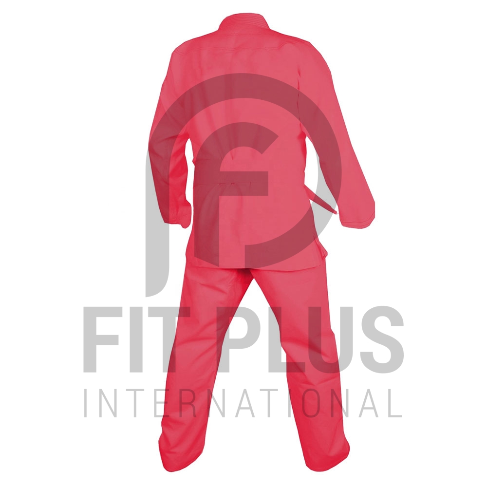The Ronin Heavyweight Karate gi is made of 100% cottonĀ 14oz. Duck Canvas, as most good heavyweight gis are. It is cut in the traditional style, but is actually cut a bit large because it will shrink anywhere from 1 to 3 inches when it is first washed and dried. The pants are the traditional drawstring pants.